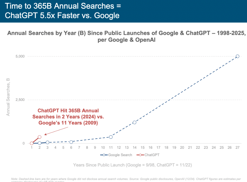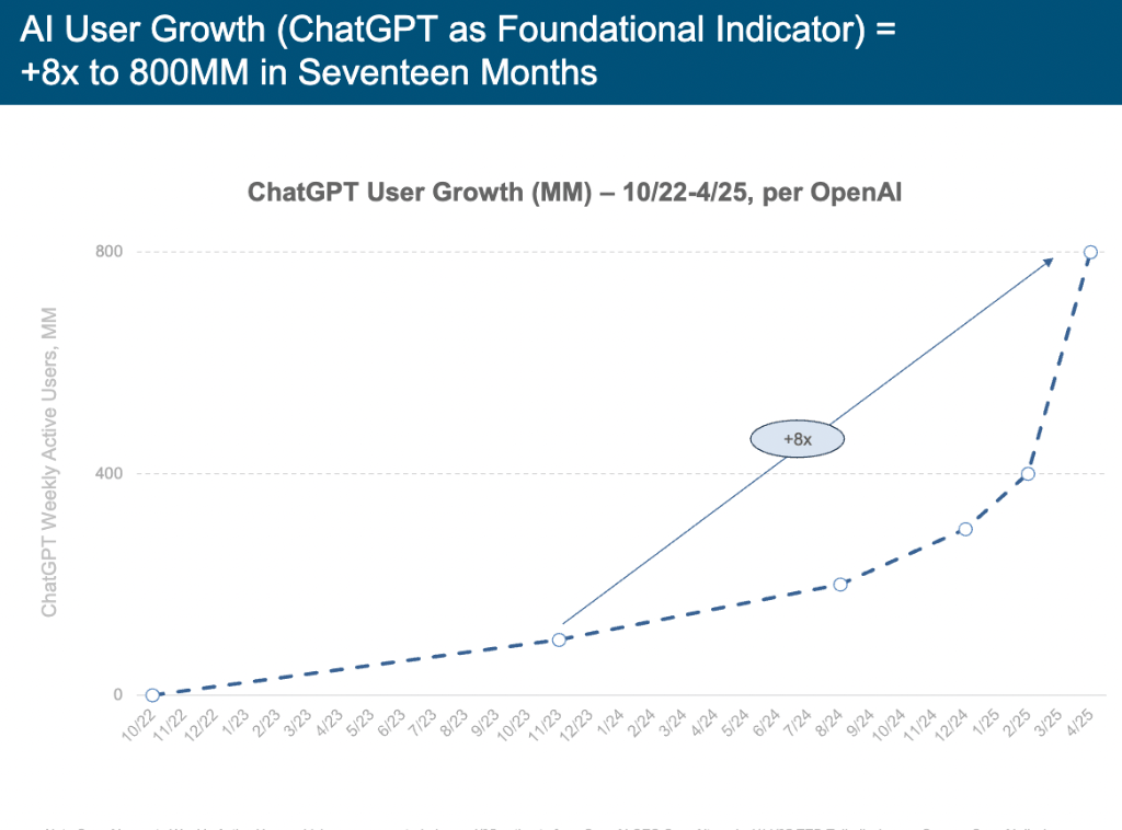 ChatGPT曾正在 17 个月内狂揽8亿用户,AI成长速度之迅猛,全球仍有约26亿人未接入互联网,谷歌 TPU 和亚马逊 Trainium 的大规模开辟,用以描述AI的开辟、投入和利用速度。越过浏览器和搜刮栏,而是奠基将来的根本性投资。