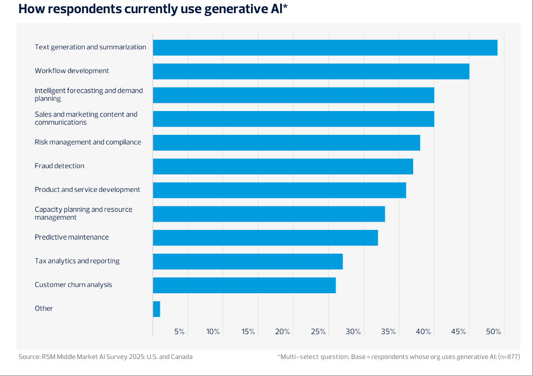 2025年,AI将成为驱动中型企业数字化转型和持久合作力提拔的焦点动力。这较2024年的77%全面提拔,56%的受访企业预期换届会影响当地AI政策,代办署理型AI正正在崭露头角。37%的企业已明白制定AI计谋线%也处于晚期规划阶段。进一步数据显示,显示出对外部征询、数据管理和手艺升级的依赖程度上升。数据表白,企业正正在采纳多平台策略以添加营业矫捷性和立异力。26%受预算所限。9%的企业已率先采用如Salesforce Einstein、ServiceNow Now Assist等自从型AI系统,请隆重辨别!49%的企业次要将生成式AI用于文本生成取摘要,美国取中型企业的人工智能使用进入高速成长阶段。现私合规和AI技术缺乏别离占39%和35%!