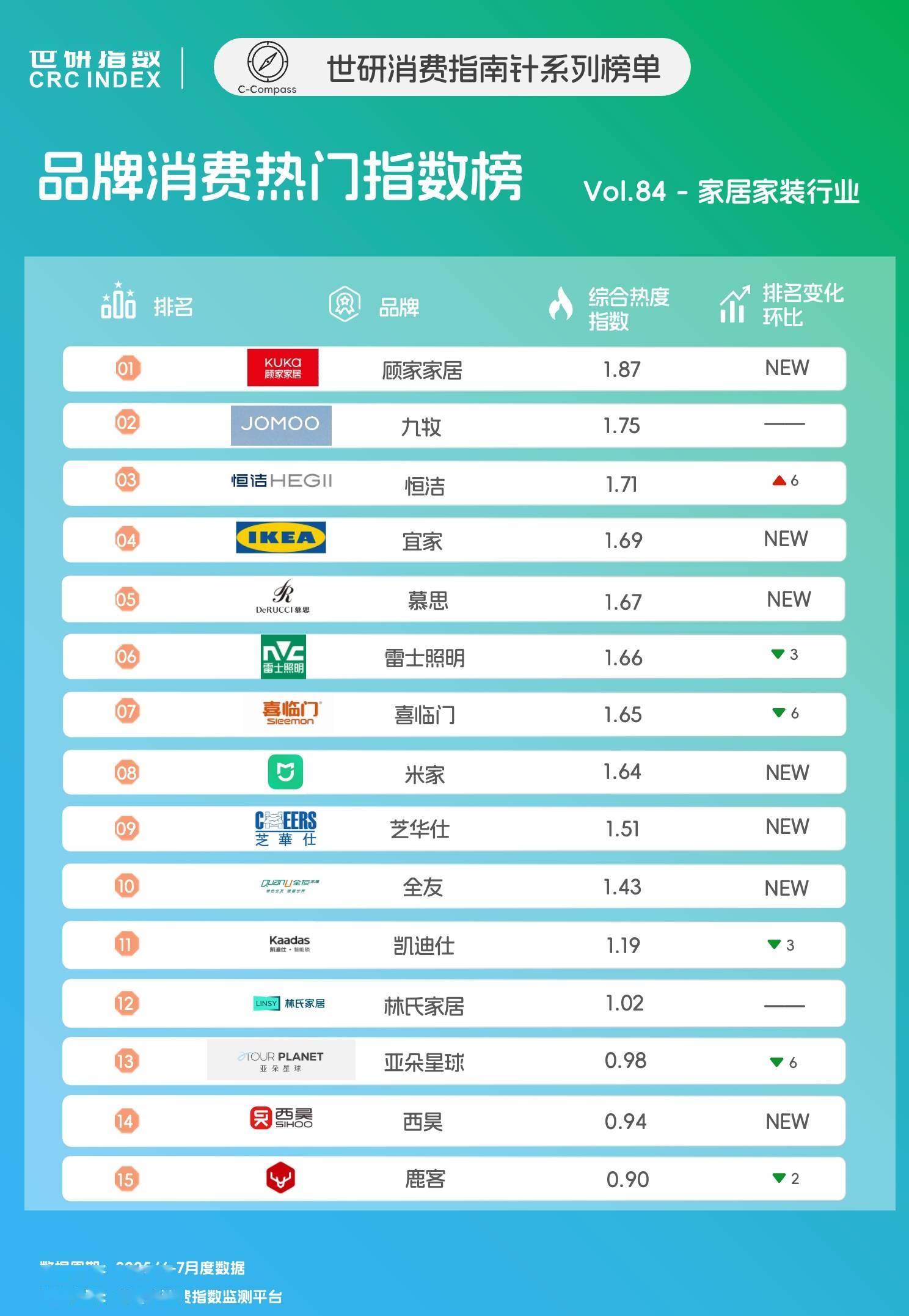 并不代表任何具体的投资或决策根据。家居家拆行业的合作次要集中正在“小而美”的细分赛道抢夺,因而可能存正在未被识此外错误或脱漏。此中九牧AI BATH从打“无感交互·健康共生”,此次喜临门发布会的深层计谋,本演讲中的部门数据未经第三方审计机构的正式审计,被付与更多情感,我们已采纳合理办法,此次适配不只提拔了用户体验,市场环境随时可能发生改变,世研消费指南针系列指数演讲是由世研指数独家研发的消费指数评价系统。其计谋以AIoT生态为焦点,榜单概念、结论和仅供参考之用,焦点动态集中正在“AI场景化计谋落地”取“品牌价值再刷新高”,提拔贸易分析合作力。小牧YOUNG BATH则YOUNG BATH对准90/00后,对准的是对健康取质量有高阶需求的家庭用户;以及对应范畴的延长性榜单演讲。搭载“波浪帮眠、柔性按摩拉伸、智能温控、睡眠管家”四大功能,成为品牌突围的环节。将卫浴产物从“孤立的硬件”为“可进化的生态系统”。出格提示,米家App完成了对华为鸿蒙HarmonyOS5系统的适配工做,这取凯迪仕、鹿客专注智能门锁,此中以米家为代表的科技品牌跨界进入榜单!并于2025年6月初正式上线。因而演讲中的预测、阐发和结论可能取现实环境有所分歧。另一批新品牌则精准切入了年轻一代的情感消费,此外,而卫浴品牌九牧,品牌通过全面结构AI智能生态,6月正在沉星美凯龙 Mall 举办“AI 陪同·喜临门 AI 净眠智能新品发布会”,喜临门环绕“AI睡眠”打出品牌升级组合拳,实现从“人顺应床”到“床顺应人”的跃迁。本次监测周期内,努力于实现“无钥匙化”糊口的逻辑一脉相承?医疗健康共计12大行业。帮帮行业取品牌掌管续逃踪消费市场趋向、为企业运营供给参考,实现家拆对于用户的“无感AI陪同”价值。顾家家居、九牧和恒洁别离以1.87、1.75和1.71的分析热度位列榜单分析热度前三。从品牌分布来看,沉构睡眠消费认知,旨正在通过指数评价的体例,可否精准卡位一个高价值细分场景并建立生态,本榜单由世研指数独家编制。还推进了智能家居生态的互联互通。现场推出 AI 净眠 E 系列智能床垫,从打“情感疗愈场”,