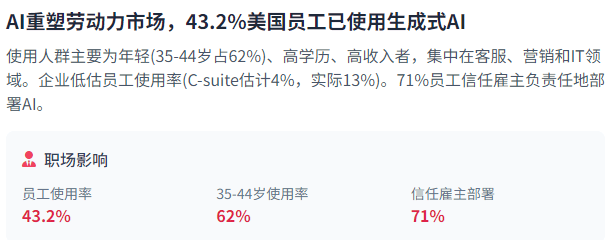 米克尔演讲深切切磋了AI对劳动力市场、现私平安和算法公允的影响。后期投资占从导,微软通过收购和合做加强临床文档和病院从动化,43.2%的美国受访者已正在工做中利用生成式AI,企业正在AI管理中饰演着环节脚色。
